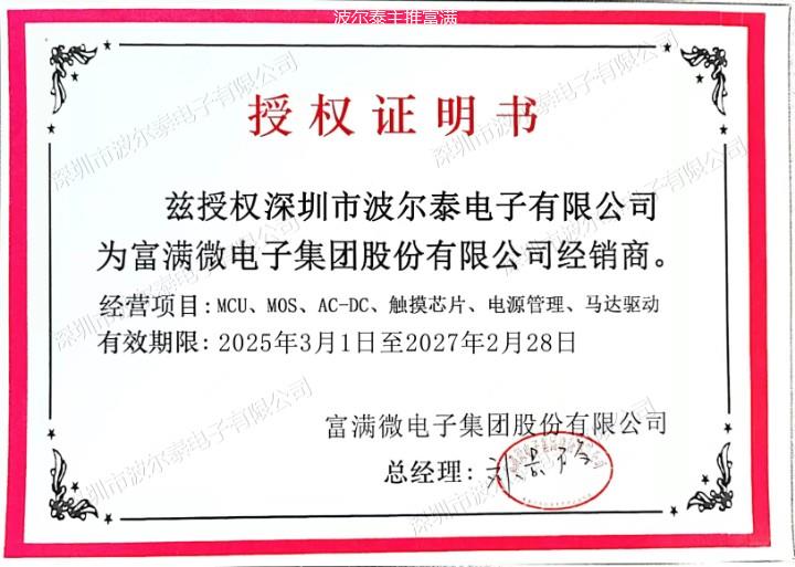 深圳市波尔泰电子有限公司创建于2021年,是一家靠谱的电子元器件渠道商,已和原厂建立多年良好的业务关系,专门经营富满电子(FM),我们以低成本提供全方位一站式电子元器件供应链采购方案,专注服务于电源充电管理,LED显示,马达驱动,工业控制,汽车电子等多个市场领域。历经多年的不懈努力,深圳市波尔泰电子有限公司现已发展成为国内专业可靠的IC混合型(授权与非授权)电子元器件分销商。 波尔泰电子从业以来屡获好评与推荐,公司的发展离不开对产品的严格把关和对客户的用心服务,我司诚心期待您的支持。